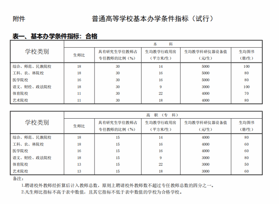 2004(2号文)普通高等学校基本办学条件指标(试行)
